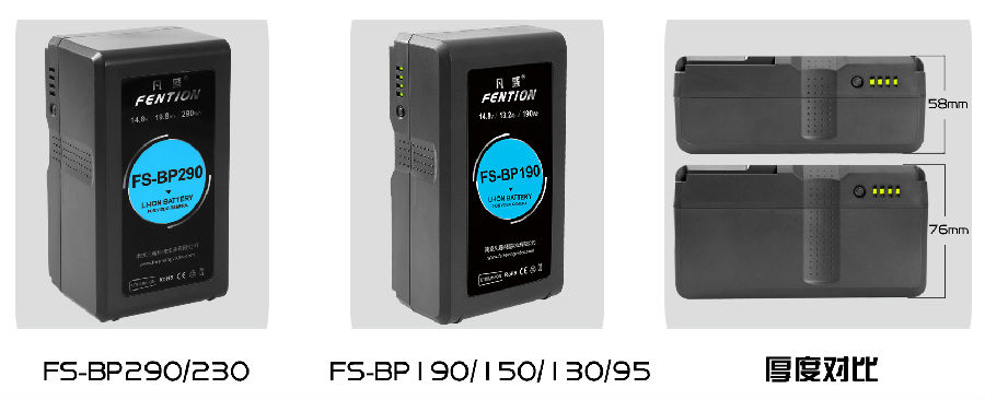 “凡盛”系列鋰離子電池定位于LED燈具、攝像機、影視套件、搖臂、電動軌道、攝輔器材及影視設備配套供電。