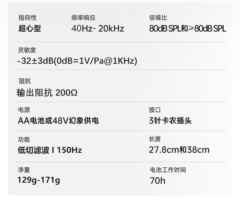 靈敏度  :   -32±3dB(0dB=1V/Pa@1KHz