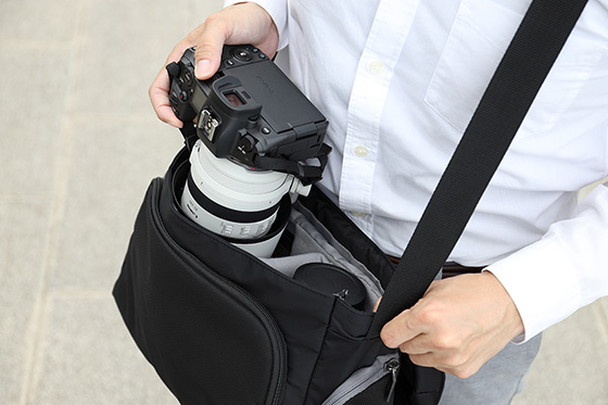RF70-200mm F2.8 L IS USM 的小身材非常便于攜帶。安裝在EOS R上時(shí)也能夠輕松放入中小型的相機(jī)挎包中,大幅提升了機(jī)動(dòng)性。在偶遇拍攝時(shí)機(jī)的時(shí)候,可直接從挎包中取出安有鏡頭的相機(jī),迅速進(jìn)入拍攝狀態(tài),不錯(cuò)失決定性瞬間。此外,還能豎著放入大的相機(jī)背包中,甚至節(jié)省出一支鏡頭的空間。