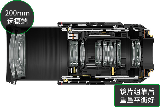 不吝惜地導(dǎo)入高級(jí)光學(xué)設(shè)計(jì)使最近對(duì)焦距離縮短至約0.7米,整個(gè)變焦區(qū)域下最近到最遠(yuǎn)焦距下都能獲得高畫質(zhì)表現(xiàn)。